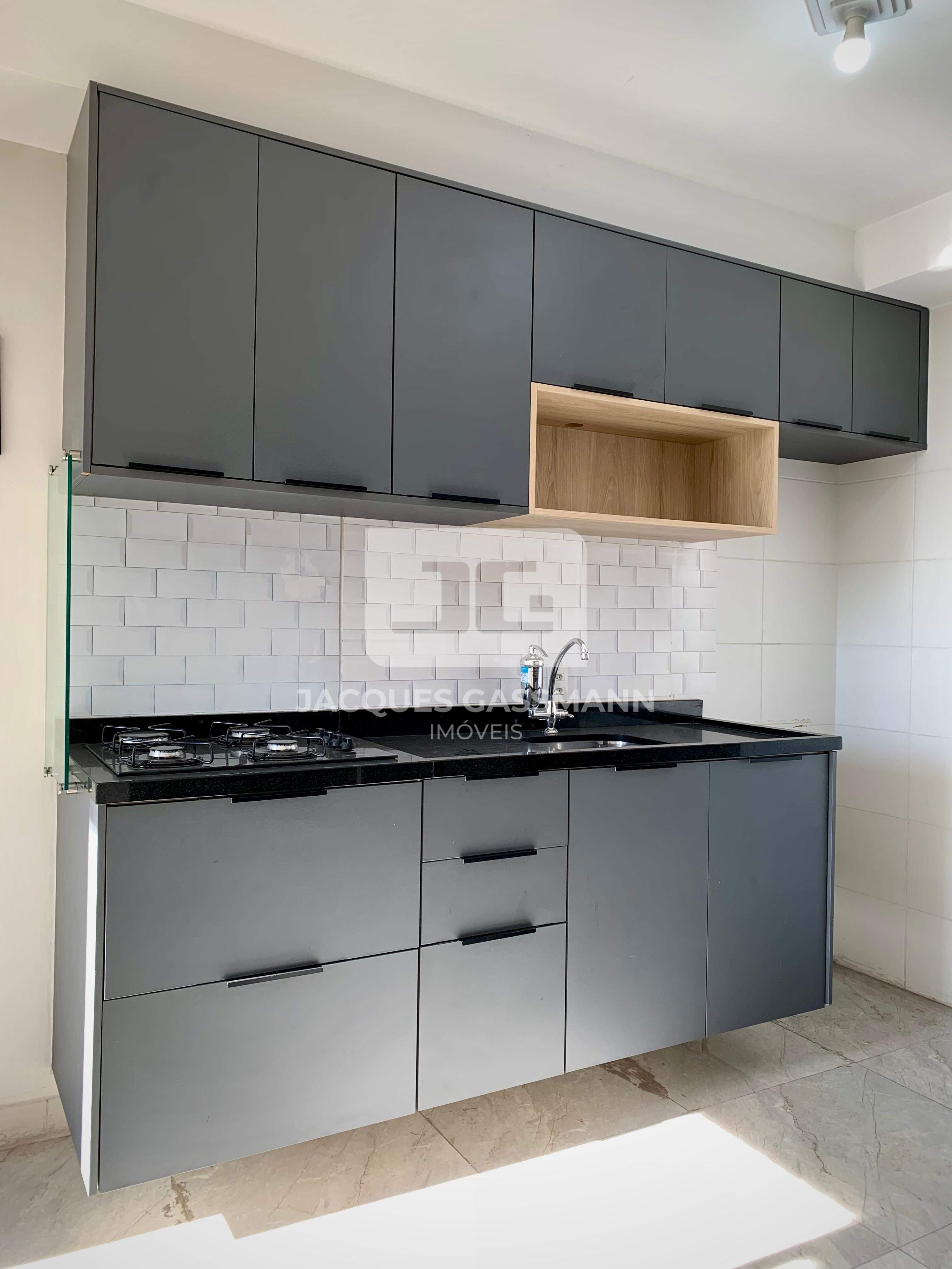 Marcenaria planejada na cozinha e suíte.