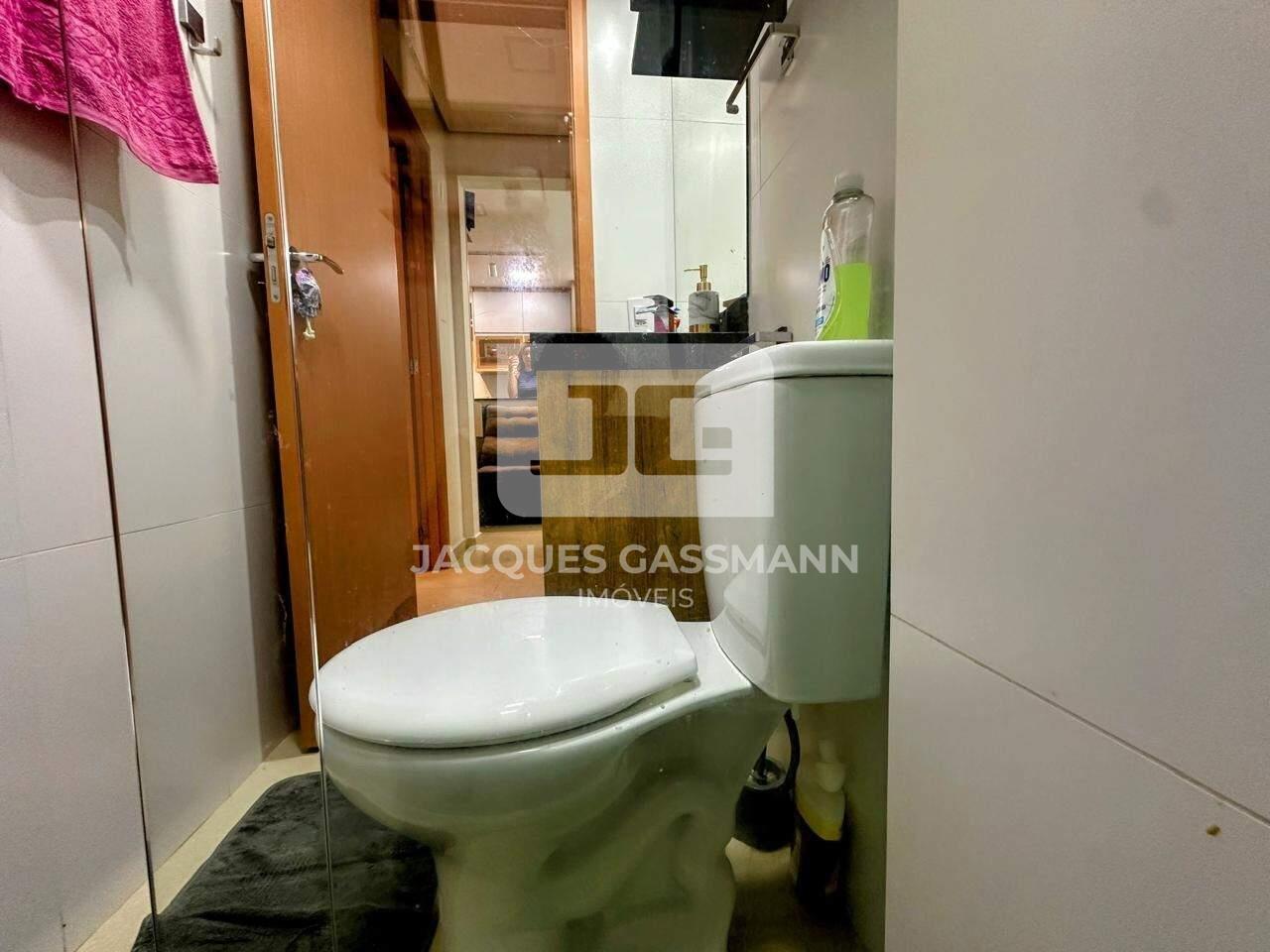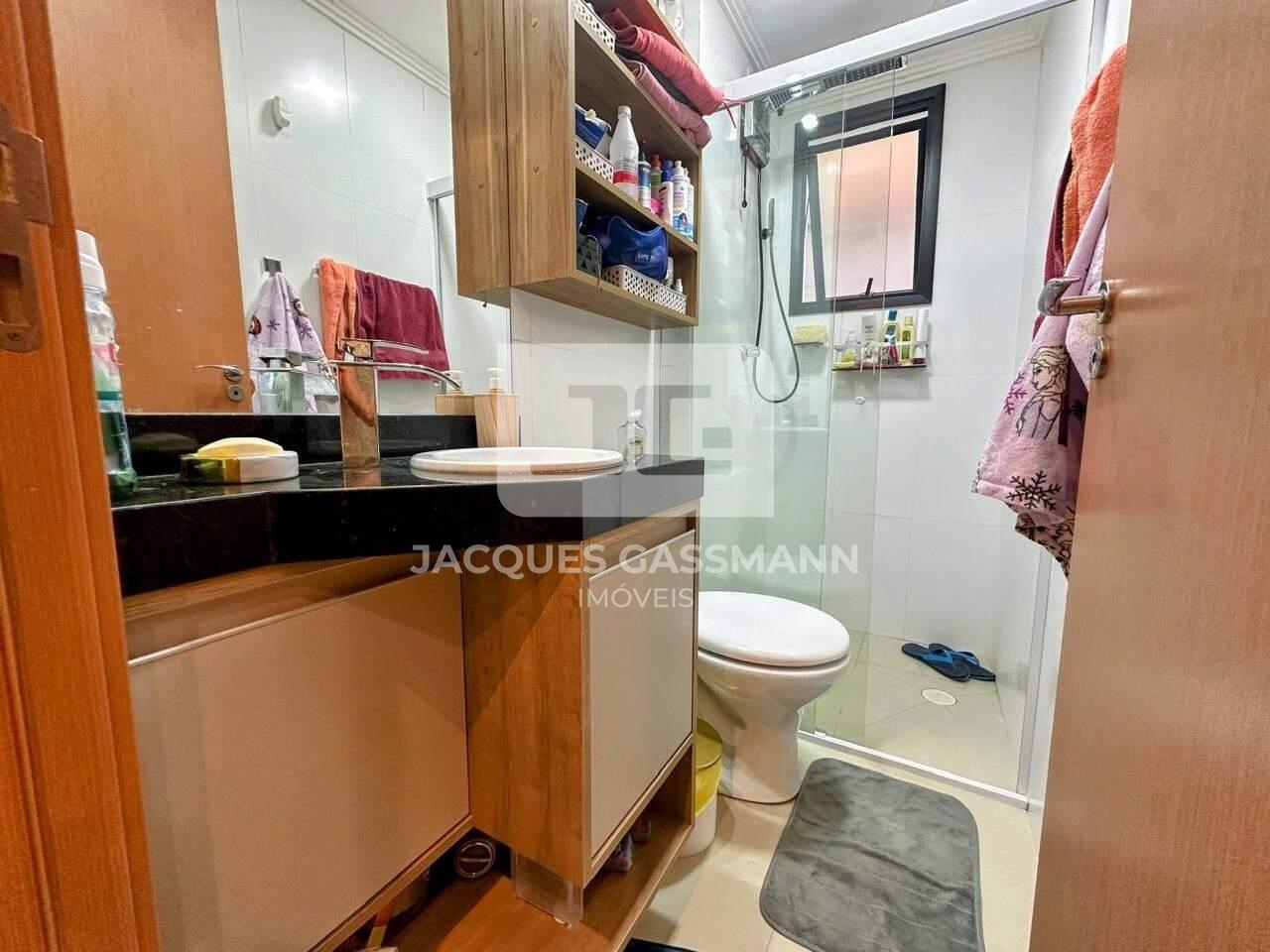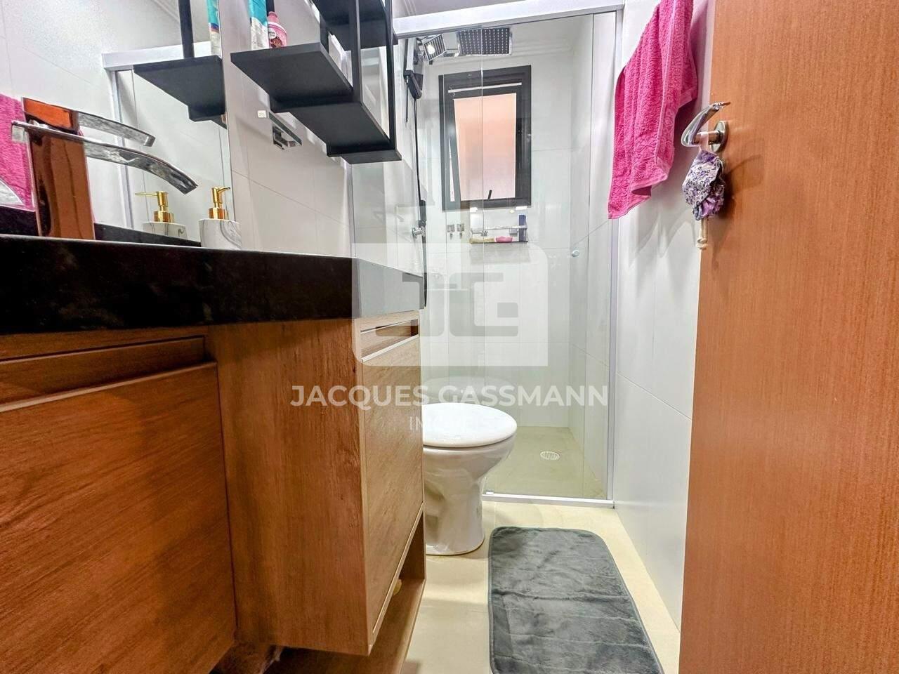 - Banheiro social com chuveiro, gabinete e box de vidro;