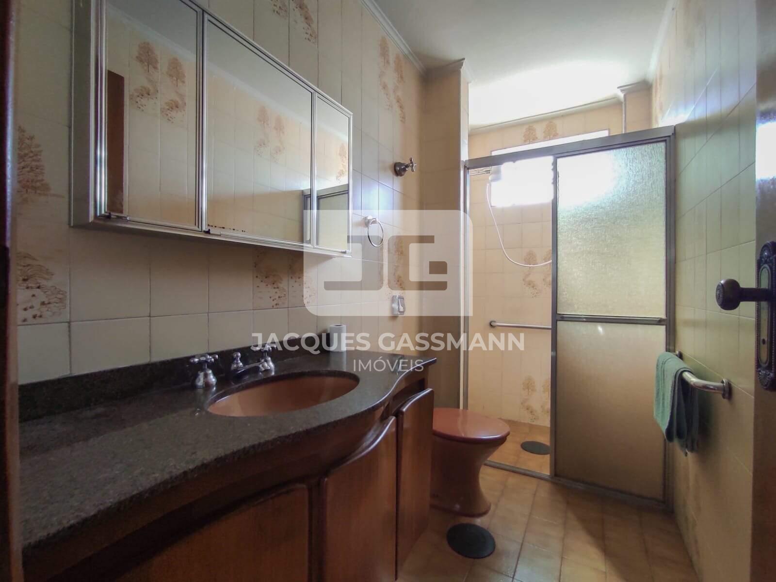 Banheiro espaçoso com ventilação natural.