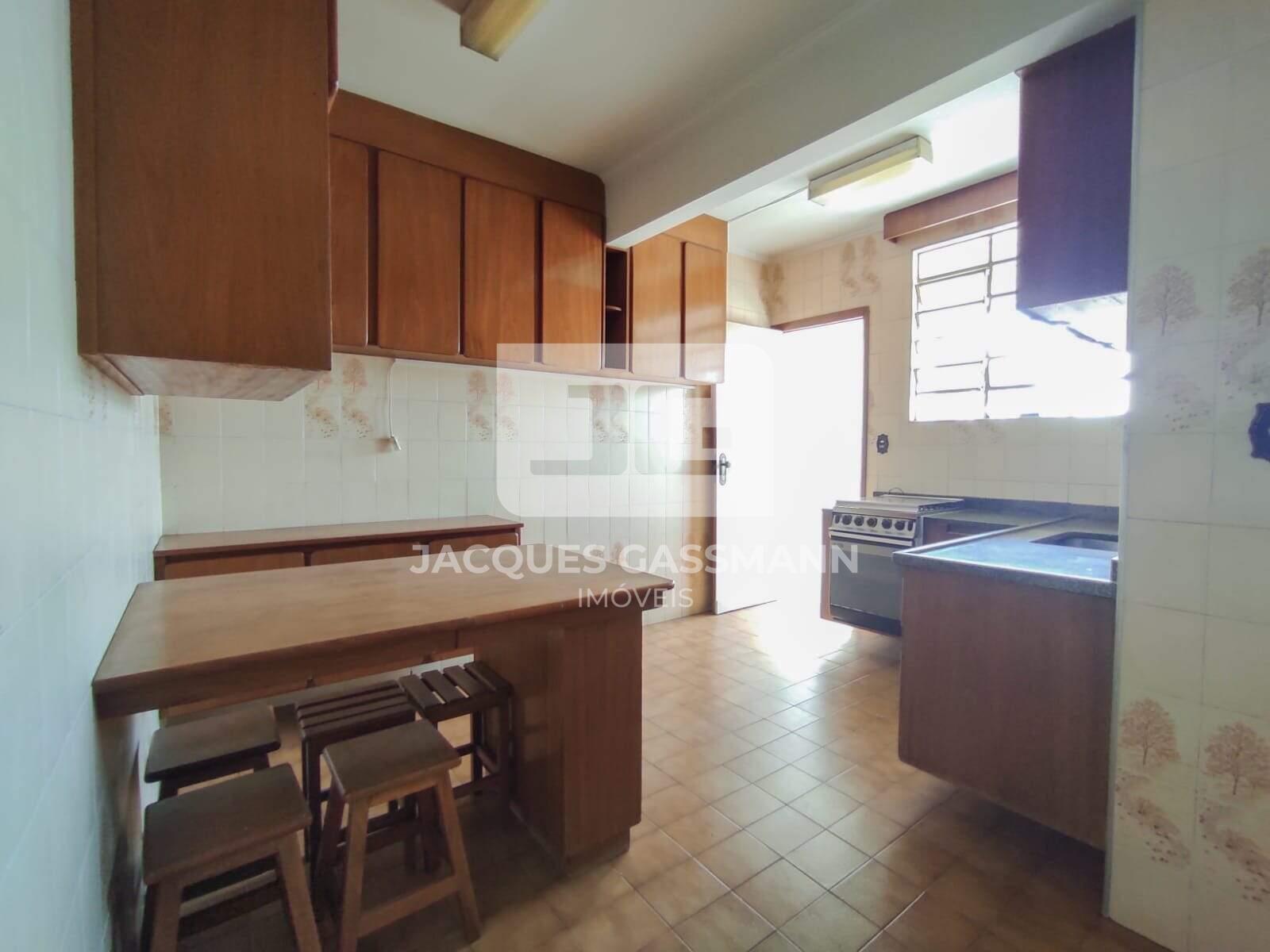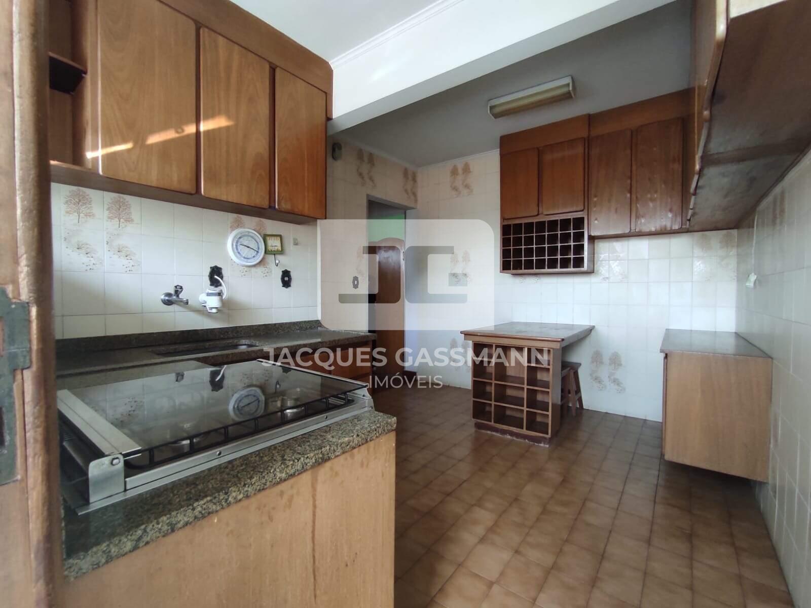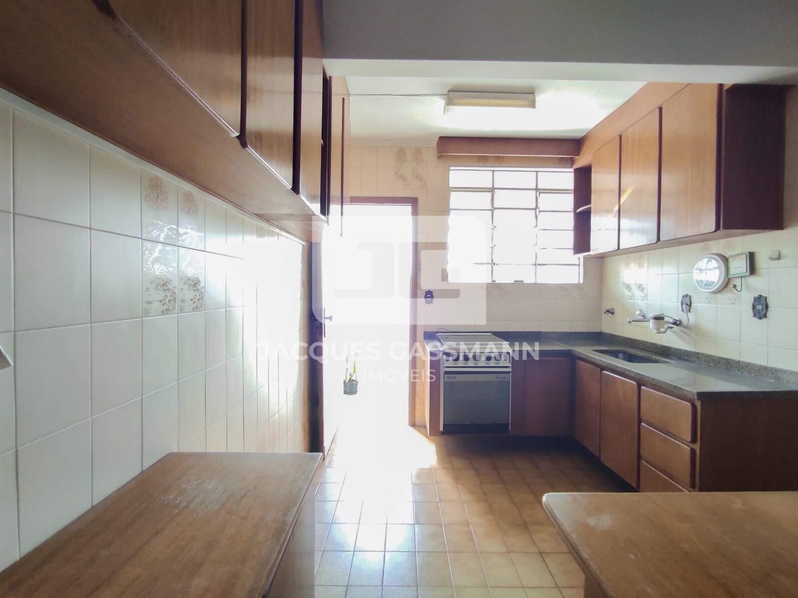 A cozinha é espaçosa, a marcenaria é de época, todavia super utilizável e fácil de modernizar, dispõe de bastante espaço de armazenagem.
