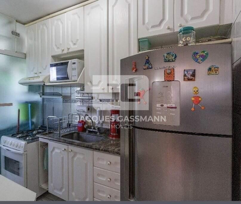 47 m², 2 dormitórios, sala com 2 ambientes, terraço, cozinha com móveis planejados, lavanderia, 1 banheiro social com box de vidro e gabinete, 1 vaga para automóvel descoberta, boa iluminação natural e bem arejado. Fica todos os móveis planejados de todos os ambientes.