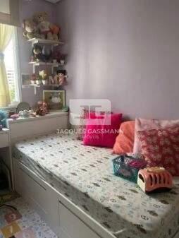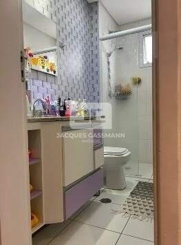 Condomínio conta com salão de festas, salão de jogos, brinquedoteca, playground, academia, piscina, sauna, churrasqueira, quadra, elevador e portaria. -