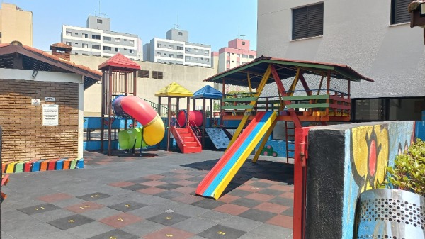 Condomínio com playground, brinquedoteca, elevador, portaria 24h, academia, salão de jogos, salão de festas, churrasqueira.