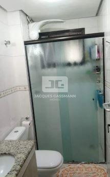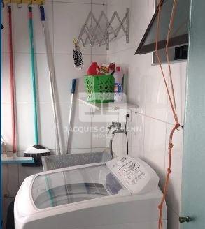 03 dormitórios, incluindo 1 suíte completa com box e gabinete, além de 1 banheiro adicional também equipado com box e gabinete. Aconchegante sala de estar, composta por 2 ambientes, complementada por uma sacada para momentos de relaxamento. Cozinha funcional e área de serviço, ambas com armários planejados, proporcionando praticidade e organização.
