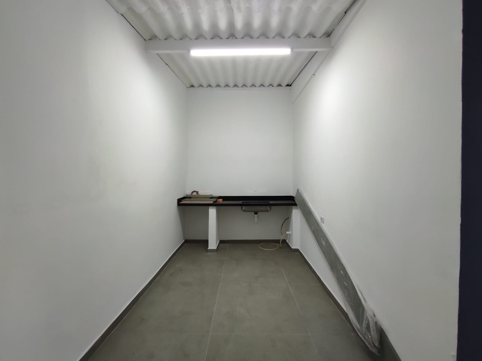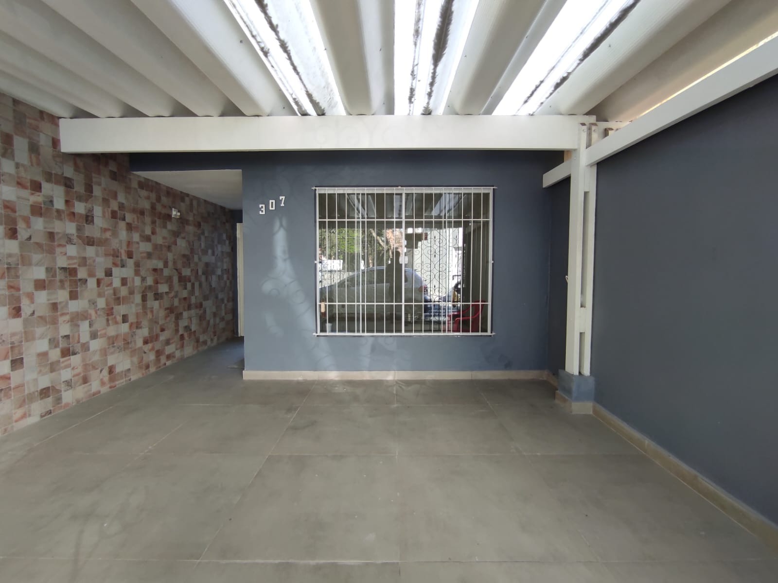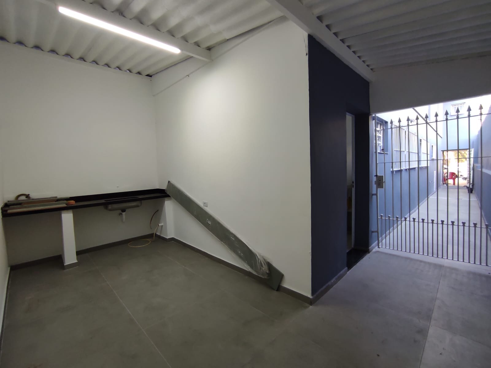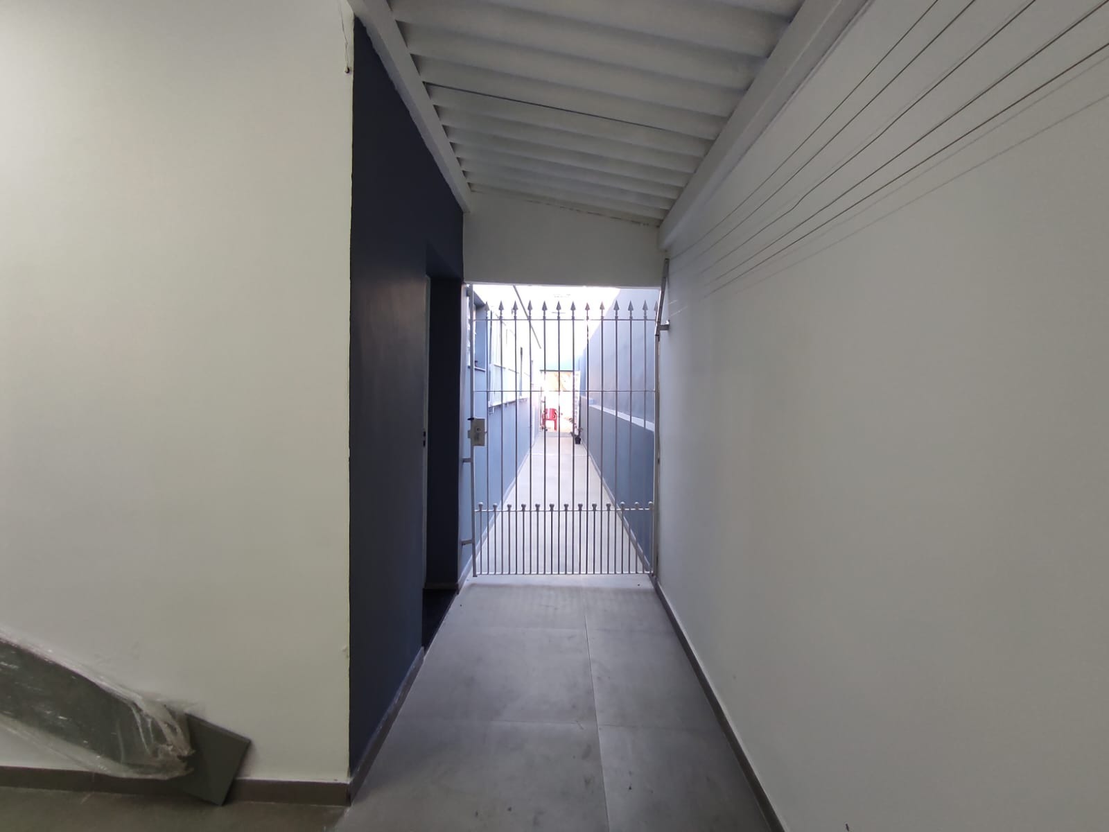 Entrada lateral com portão, que leva a uma área nos fundos coberta, com pia já instalada e espaço perfeito para montar sua