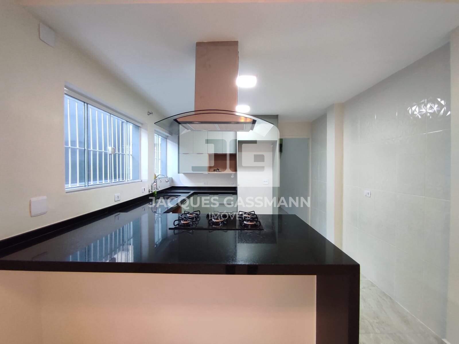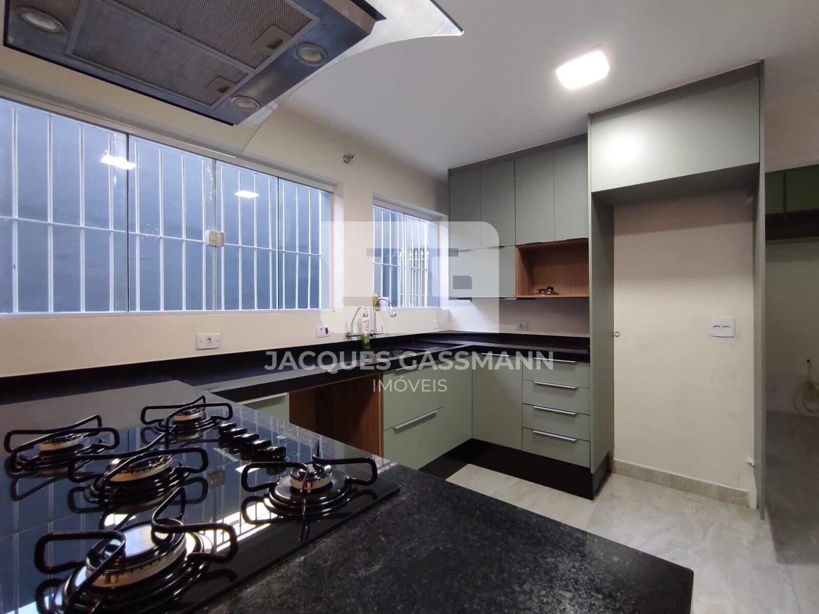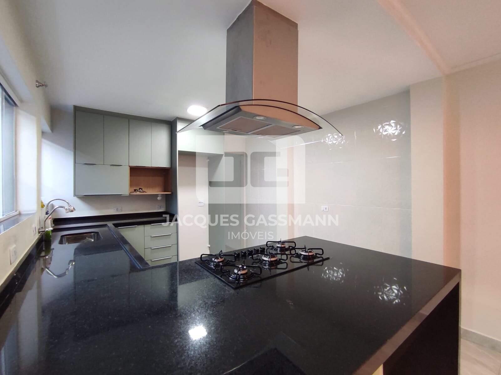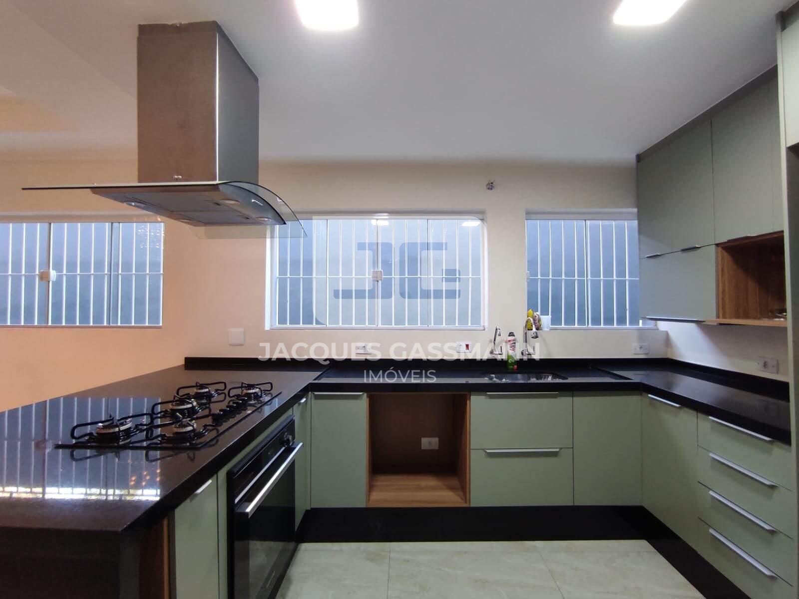 Cozinha espaçosa e bem iluminada, com armários planejados novos, cook top, coifa e forno embutido;