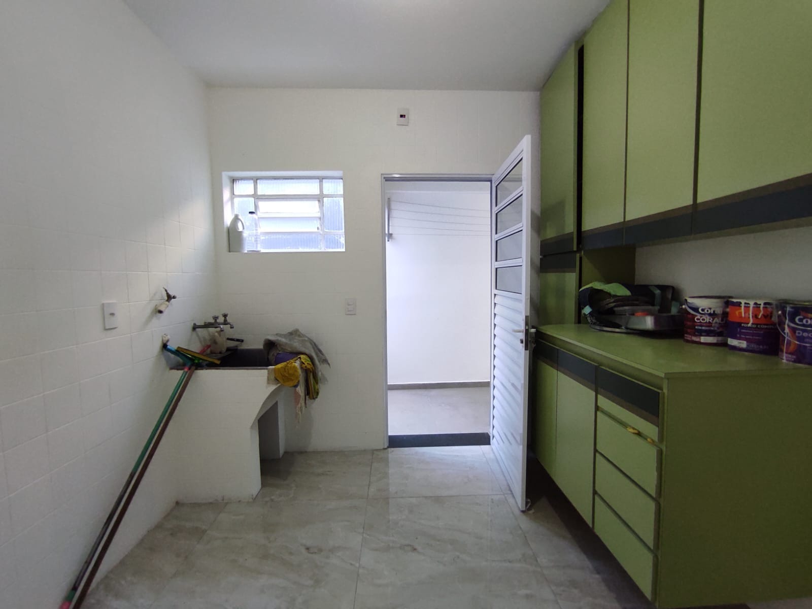 Área de serviço ampla, com armários, tanque e ótimo espaço para organização;