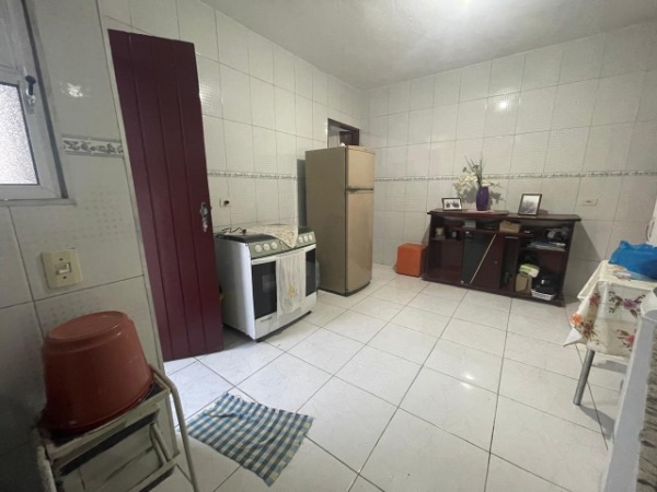 Primeira Casa; 02 quartos, cozinha ampla com revestimento, pia e gabinete, 01 banheiro e área de serviço.